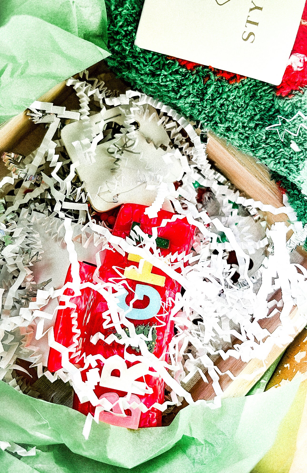 The Holly Jolly Box will contain 4-6 items of accessories, home decor, jewelry, etc! Your box could have hair accessories, a beanie, hand bag, any type of jewelry, seasonal decor, stickers, beauty, and more. Each box will be a little different, all Christmas/holiday season related!