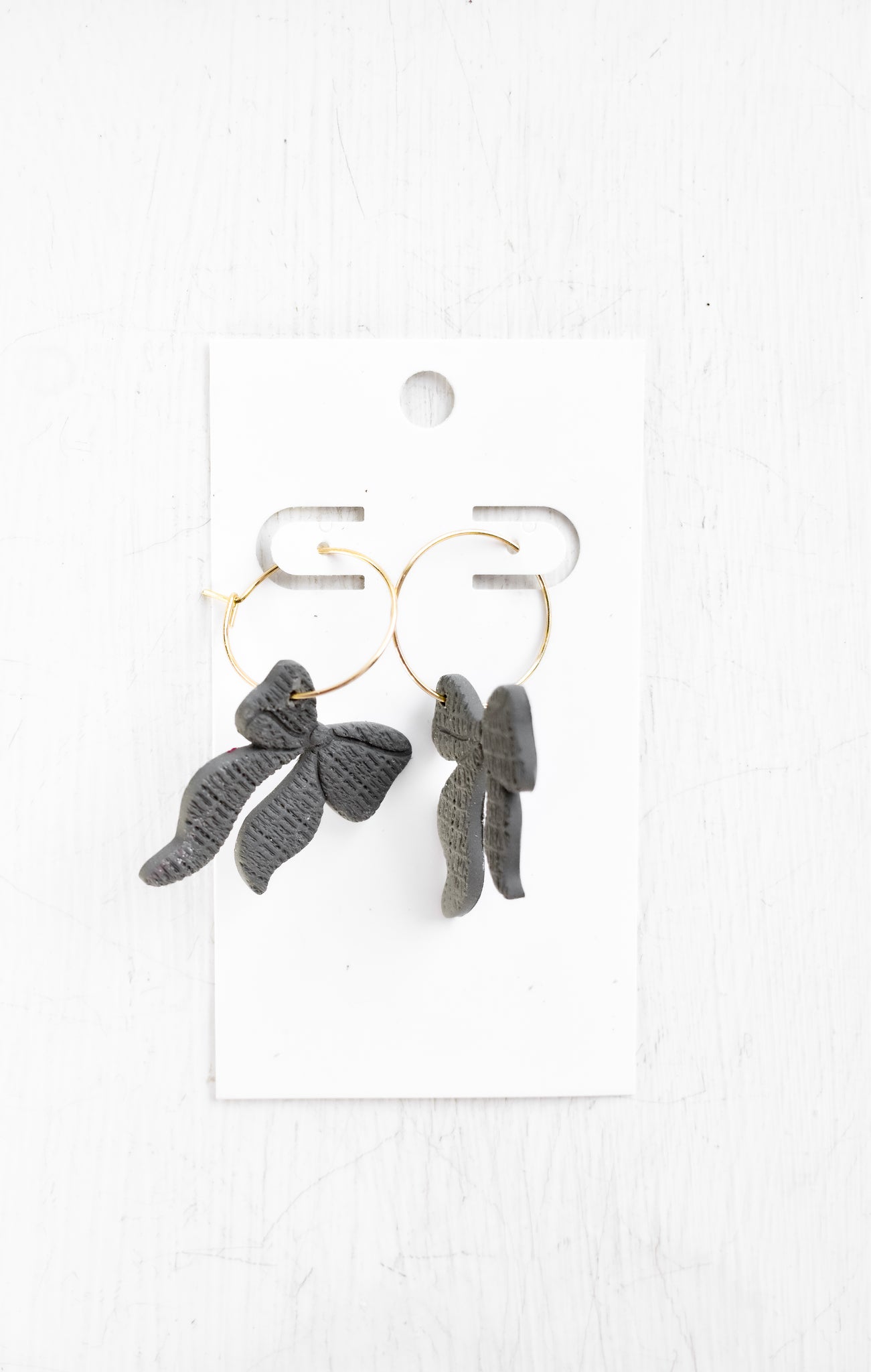 Fancy basic bow hoop earrings in brown made of polymer clay. Lightweight, hypoallergenic. Handmade by Terra Made shop in Georgia!